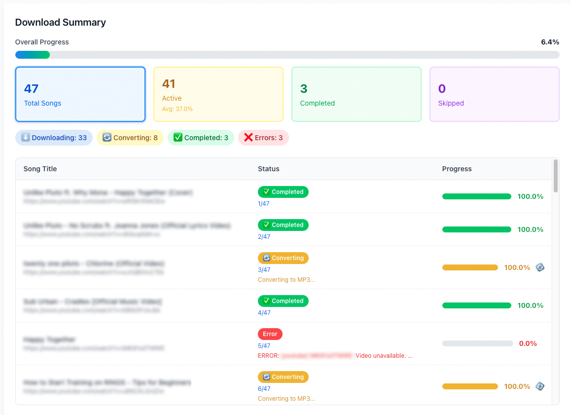 ClipSetGo is built for people who want a reliable, local way to save videos or extract audio for offline use. Paste one or more video or playlist links, choose MP3 or MP4, and let ClipSetGo handle the rest.